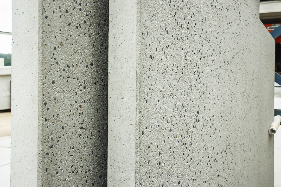 Das Bauvorhaben kombiniert einen Teilneubau mit der Aufstockung einer bestehenden Tiefgarage – eine technisch anspruchsvolle Konstellation, die höchste Präzision erfordert. Insgesamt montiert das Montage-Team vor Ort über 200 Stahlbeton-Fertigteile mit einer Betonfassadenfläche von rund 1.200 m². Die sandgestrahlte Oberfläche in betongrau sorgt für eine hochwertige, moderne Optik und wird zusätzlich mit einem Graffitischutz versehen.
