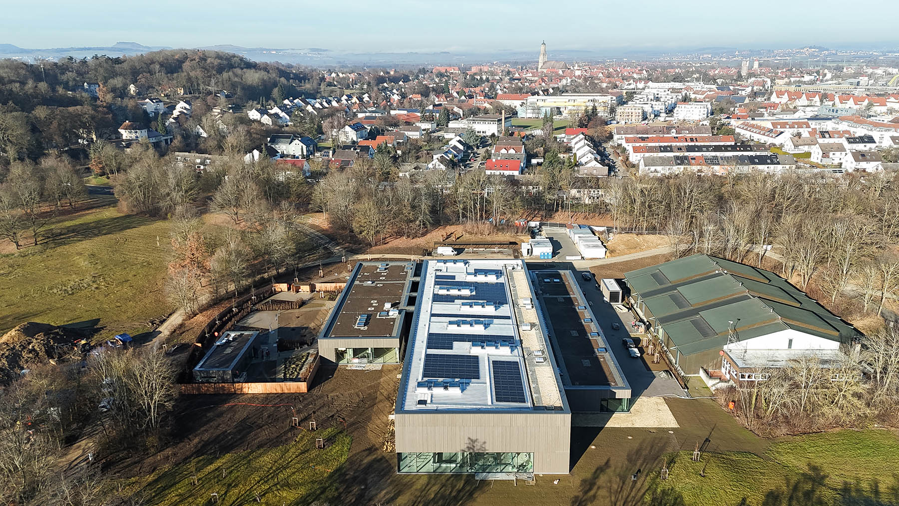 Mit dem Neubau des städtischen Hallenbads in Nördlingen entstand ein modernes Freizeit- und Badezentrum, das künftig der Stadt Nördlingen und dem gesamten Umland als attraktiver Ort für Schwimmen, Erholung und Gesundheit dient. Das Bauvorhaben umfasst ein Hallenbad mit mehreren Becken, einen großzügigen Saunabereich inklusive Außensauna sowie umfangreiche Technik- und Nebenflächen.