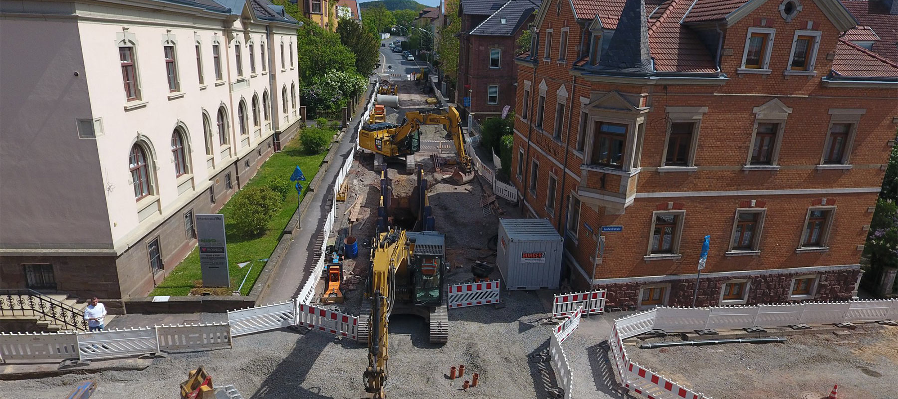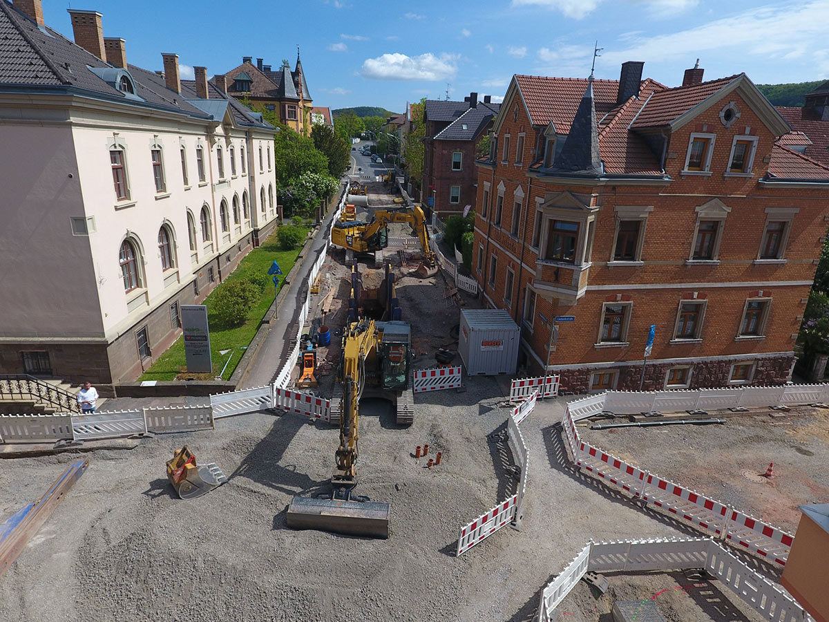 Die Sanierung der Erhardstraße war die größte Infrastrukturmaßnahme in Bad Kissingen in den vergangenen Jahren. Auf rund 650 Metern Baulänge erneuerten wir Kanal, Wasserleitungen, Gas, Telekom und sonstige Medien.
